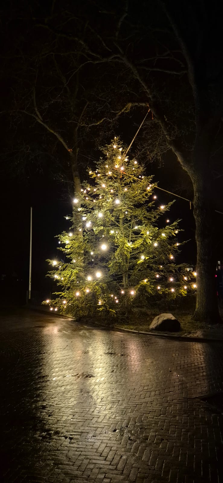 om de boom nog een mooie laatste bestemming te geven is deze verplaatst naar het centrum van Havelte om hier nog 2 maanden met lichtjes er in te shinen naast het club huis van The Big Stones